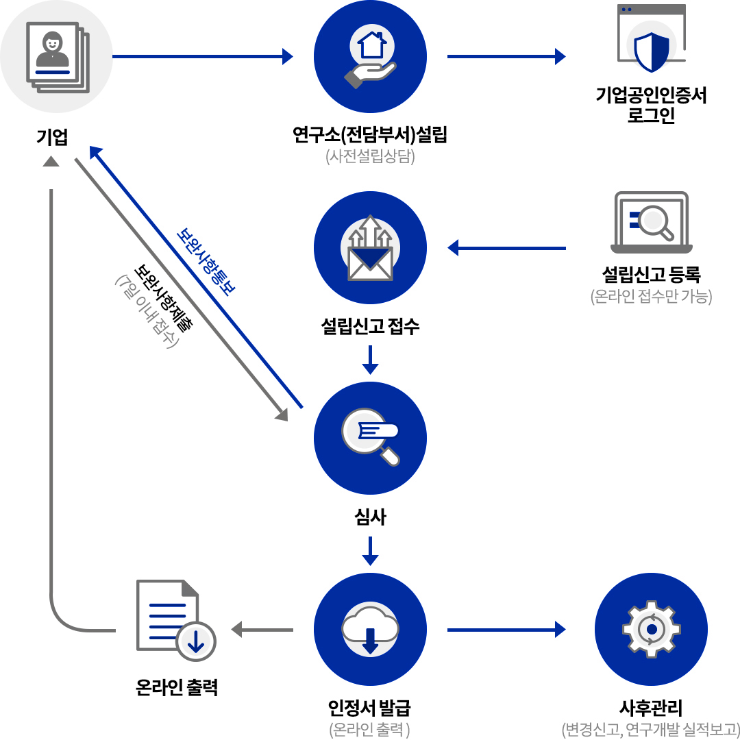 기업부설연구소/연구개발전담부서 설립 신고 제도는 일정 요건을 갖춘 기업부설연구소와 연구개발 전담부서를 신고, 인정함으로써